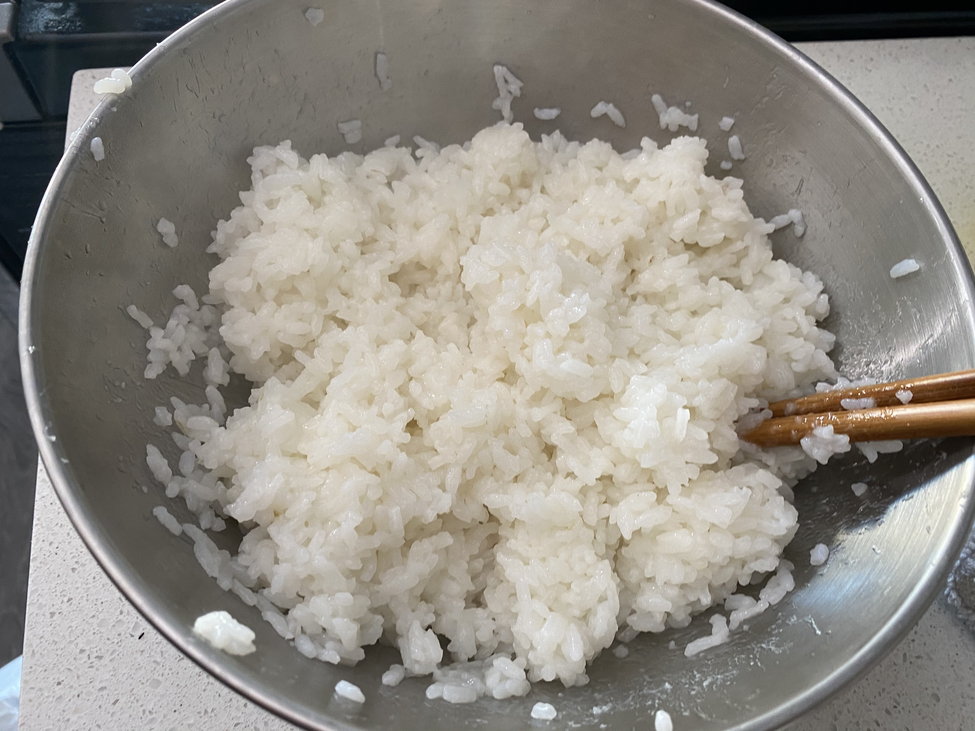 손에 물을 계속 묻혀가며 쥐어주면 밥알이 손에 잘 엉기지 않고 쉽게 만들 수 있습니다.