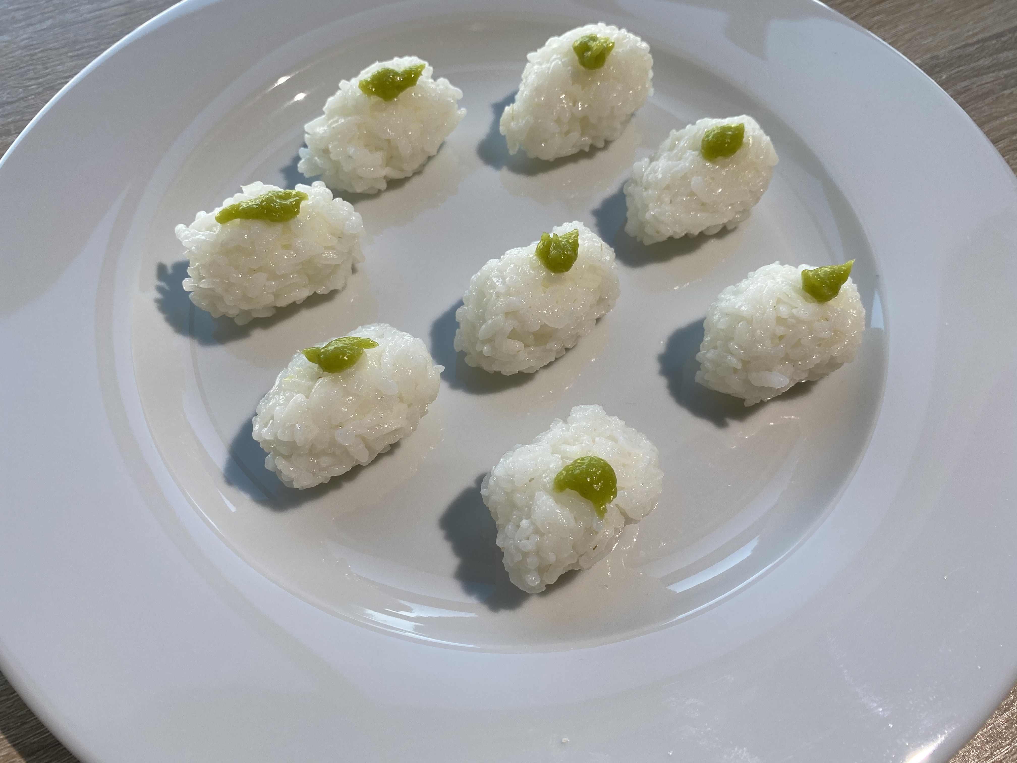 초밥 크기는 먹어봤던 군함 말이 사이즈를 생각하며 쥐어주면 되는데요