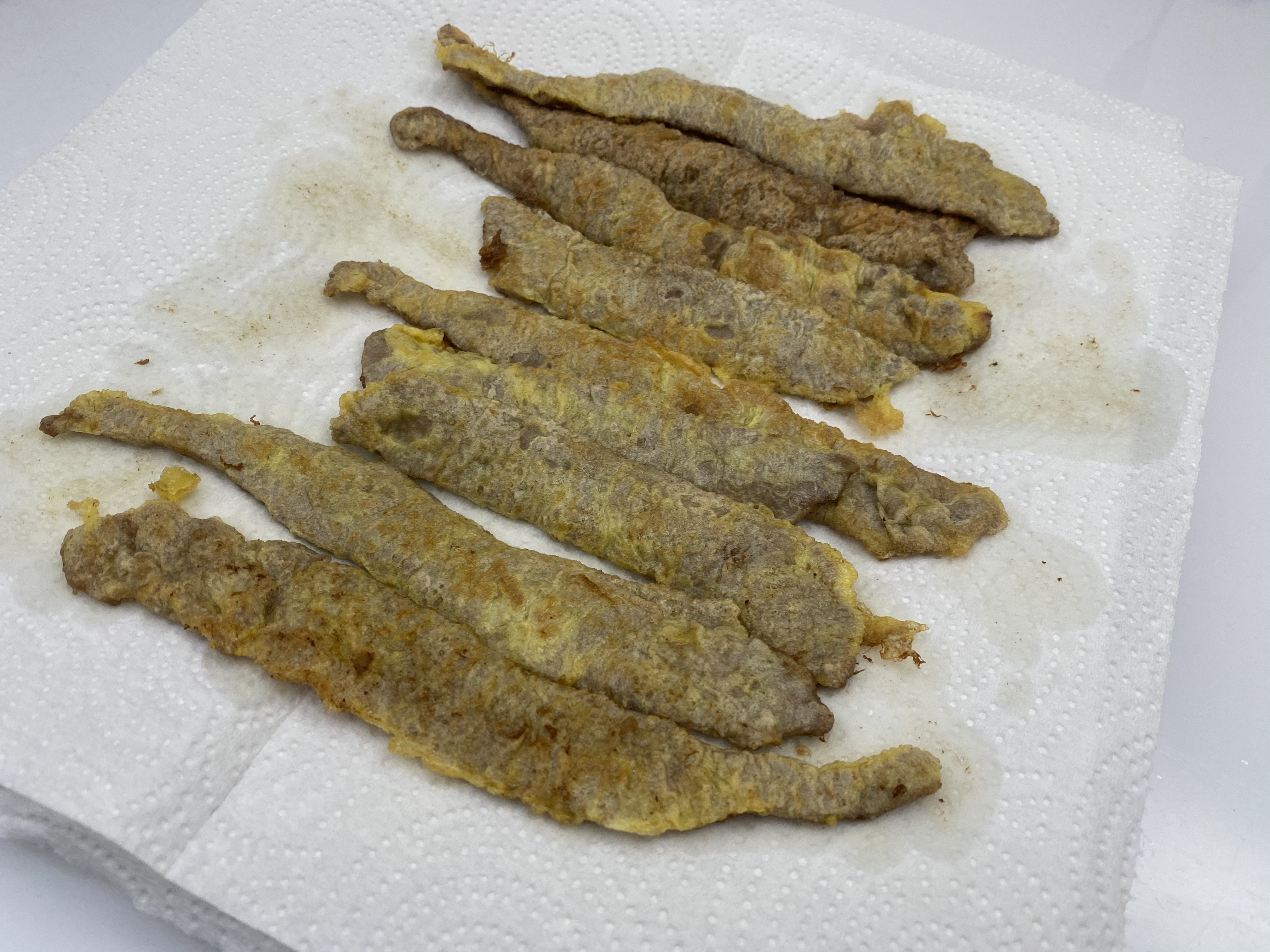 육전의 색을 더 노란색으로 만들어 주고 싶으면 흰자를 조금만 사용하거나 전혀 사용하지 않는 방법이 있긴 하지만 흰자의 양이 줄어들면 육전 자체가 좀 퍽퍽해질 수 있어요.