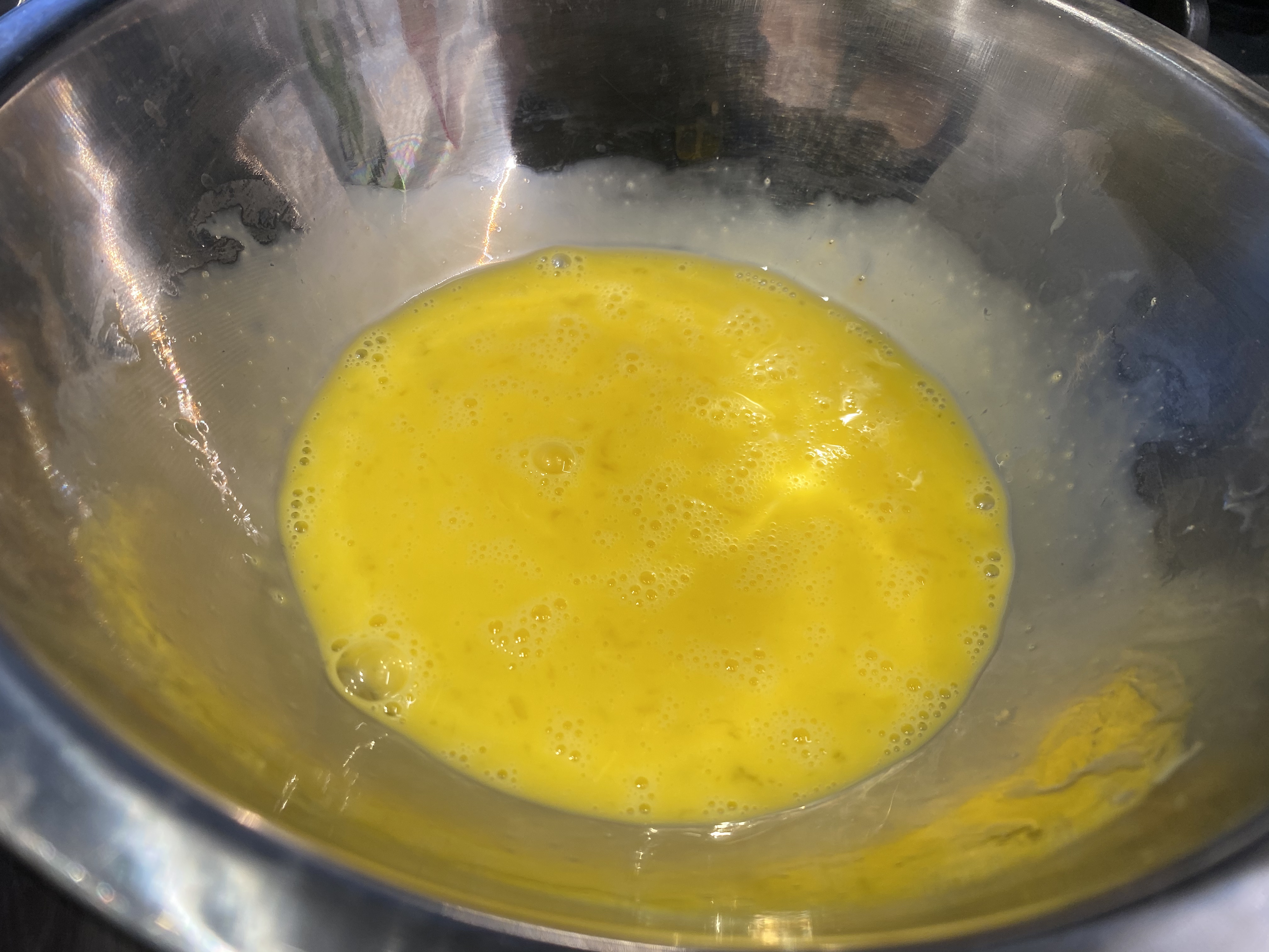 4. 계란물은 알끈이 끊어질 정도로 잘 저어서 풀어줍니다.