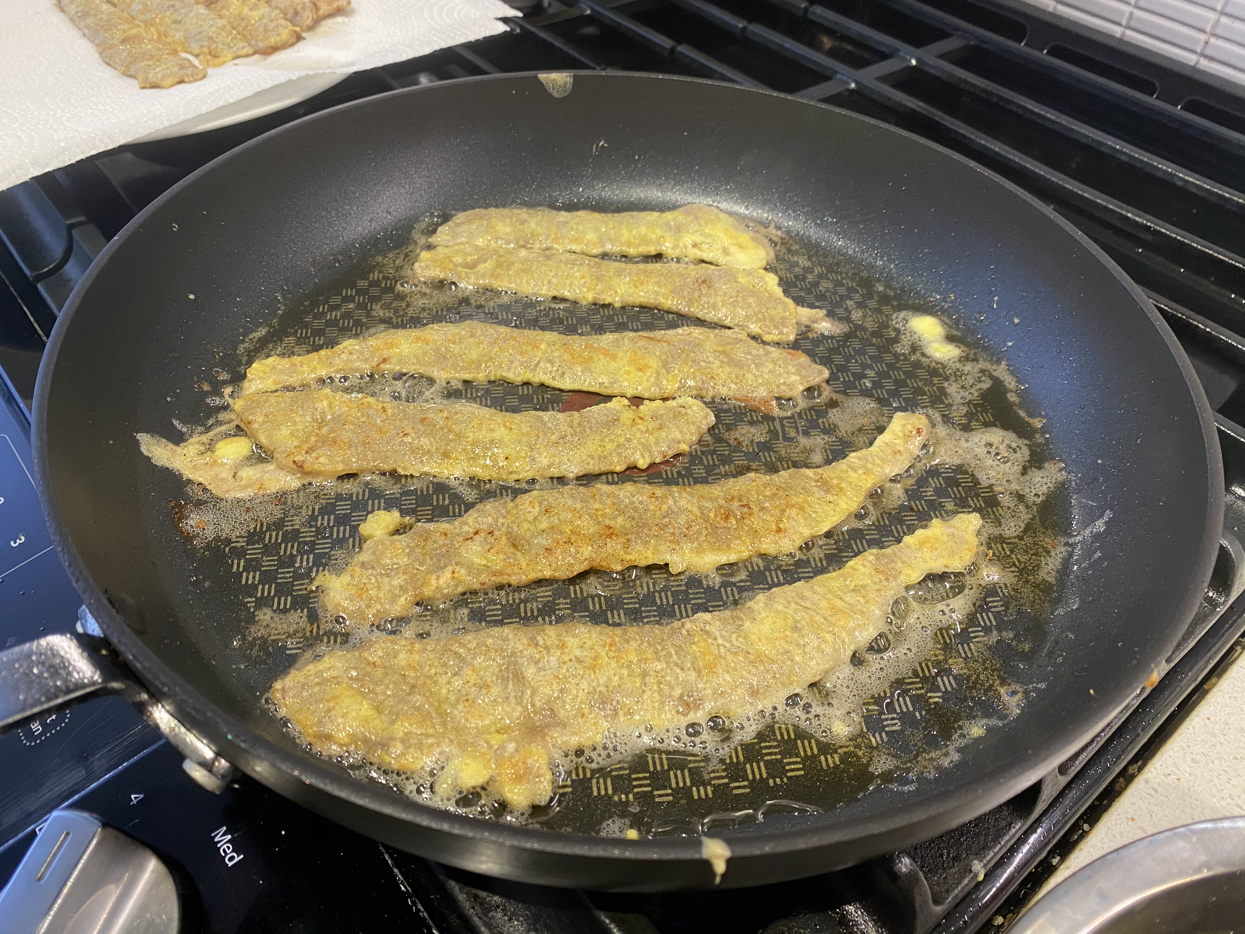 고기 자체가 얇기 때문에 앞뒤로 1분 정도면 충분할 것 같습니다.