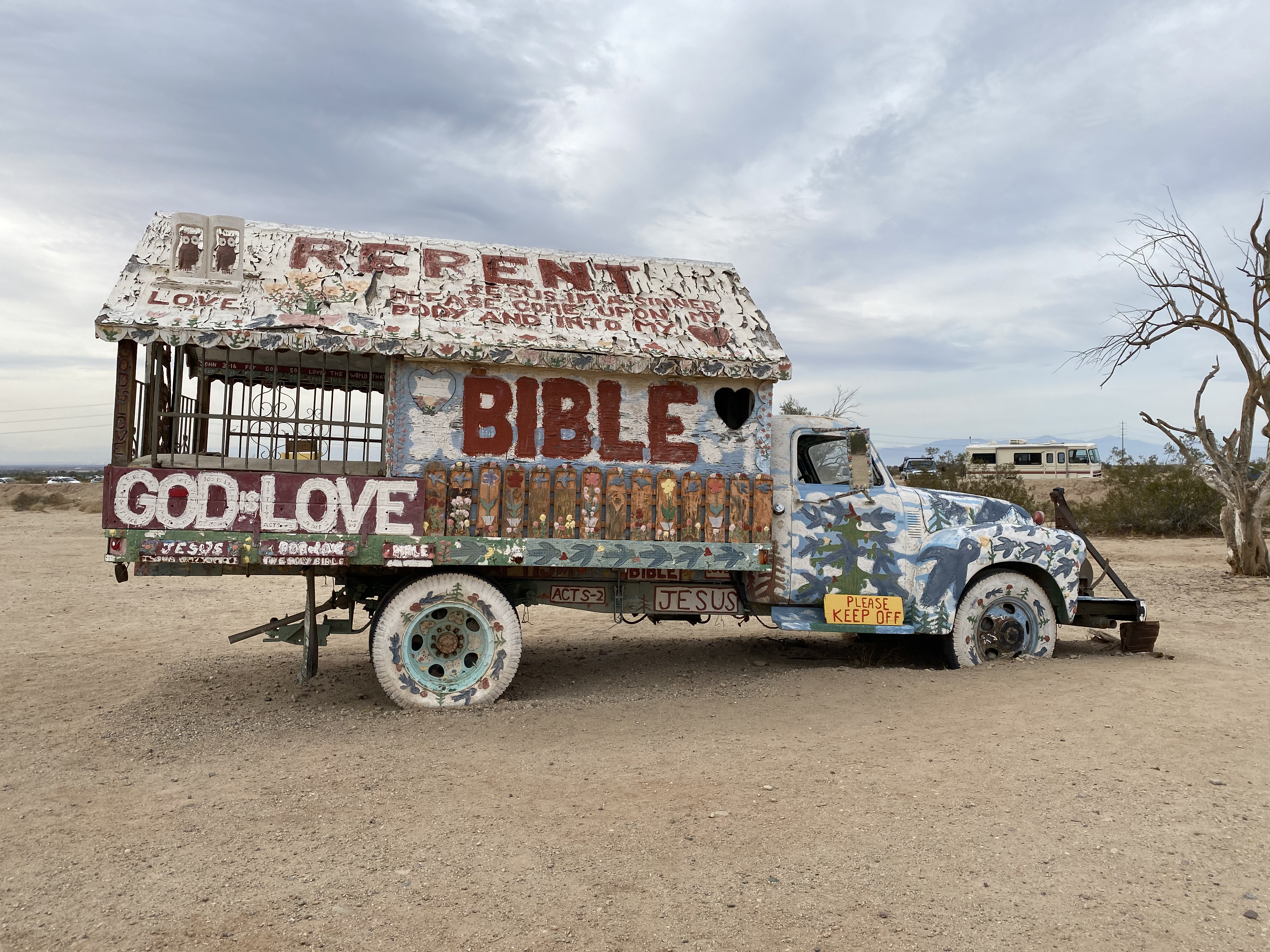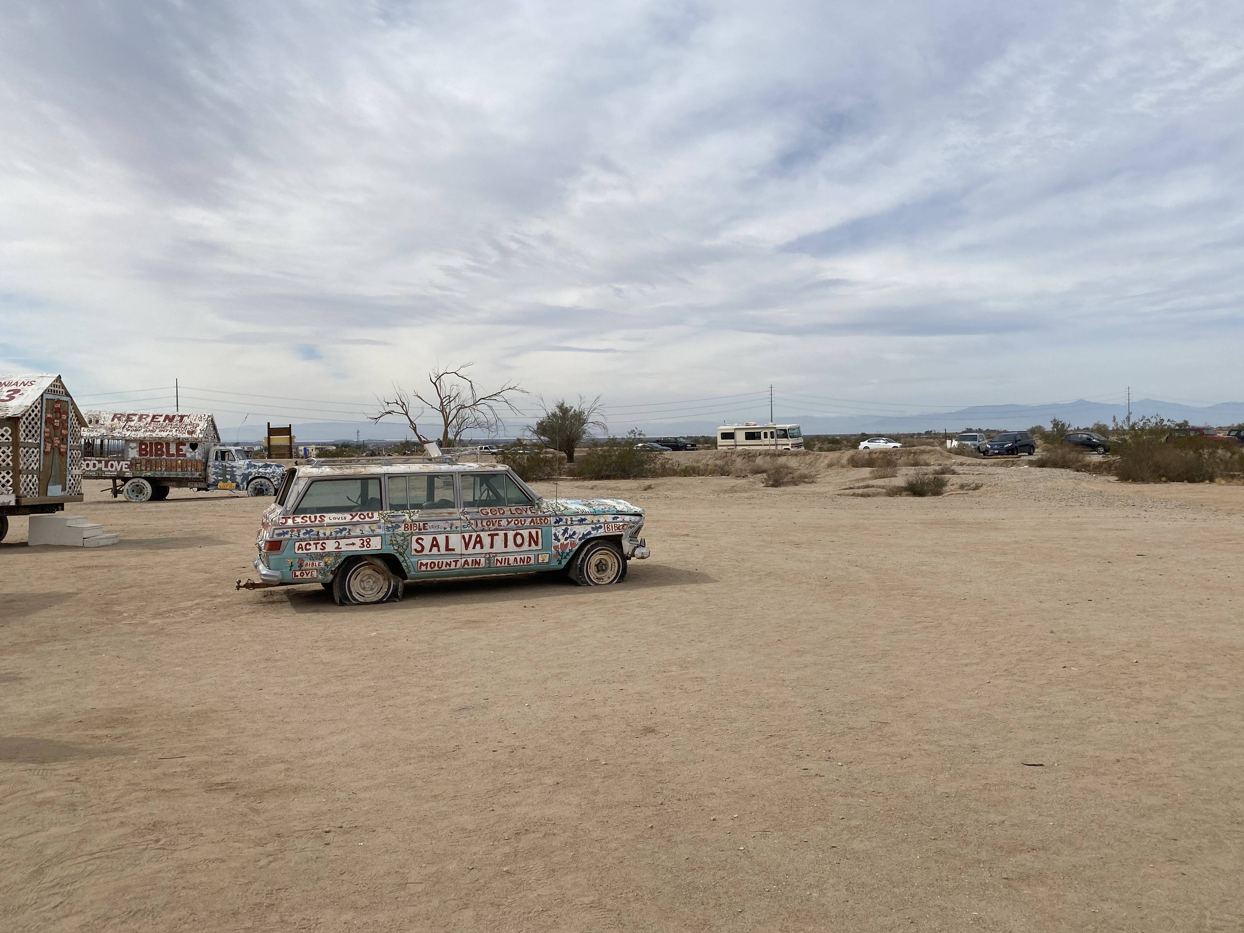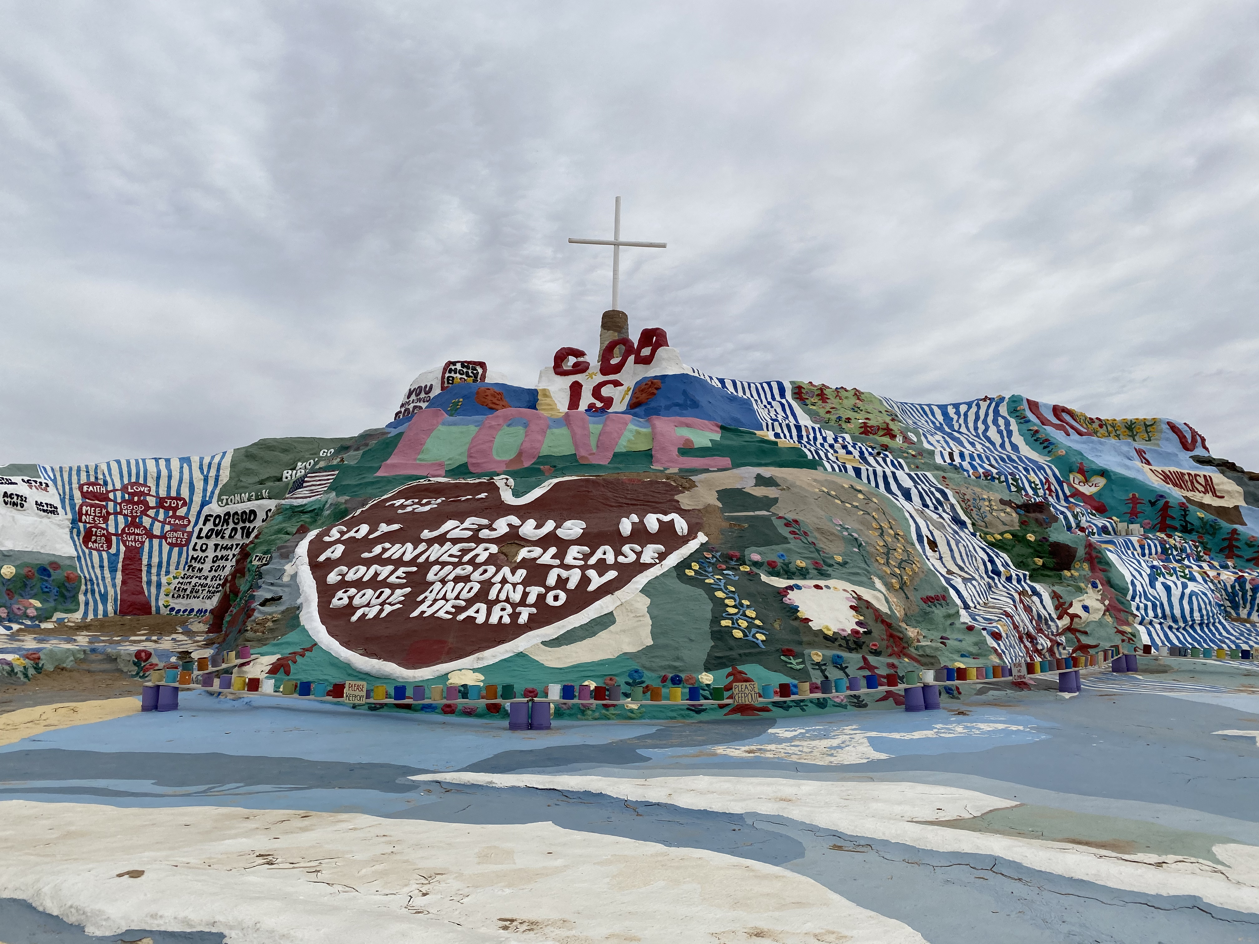 원래는 열기구에 메시지를 담는 방법으로 예수님의 사랑을 전하려 했지만 해당 계획이 실패하였고 그 계획을 대신하여 살베이션 마운틴이라는 언덕을 만들었다고 하네요.