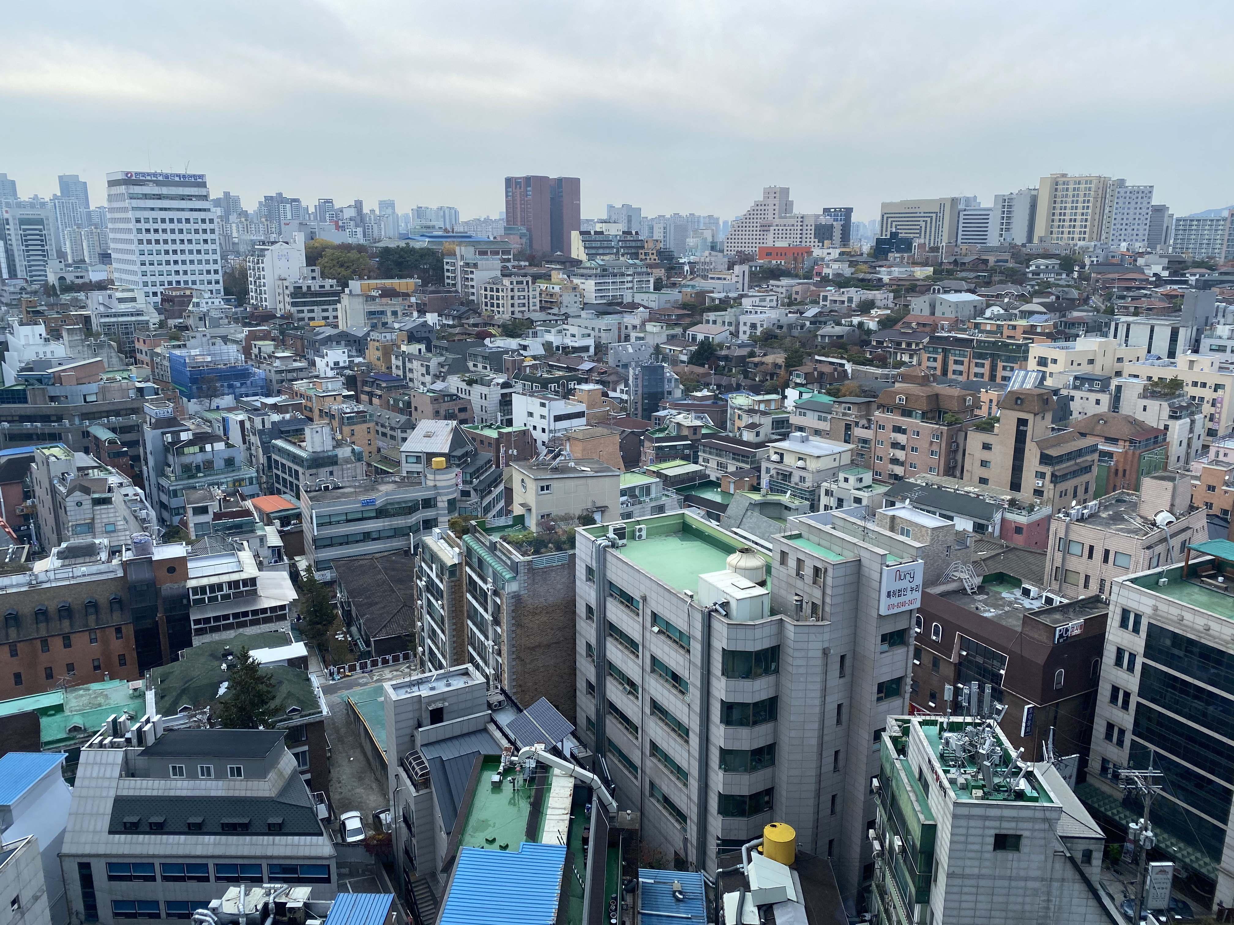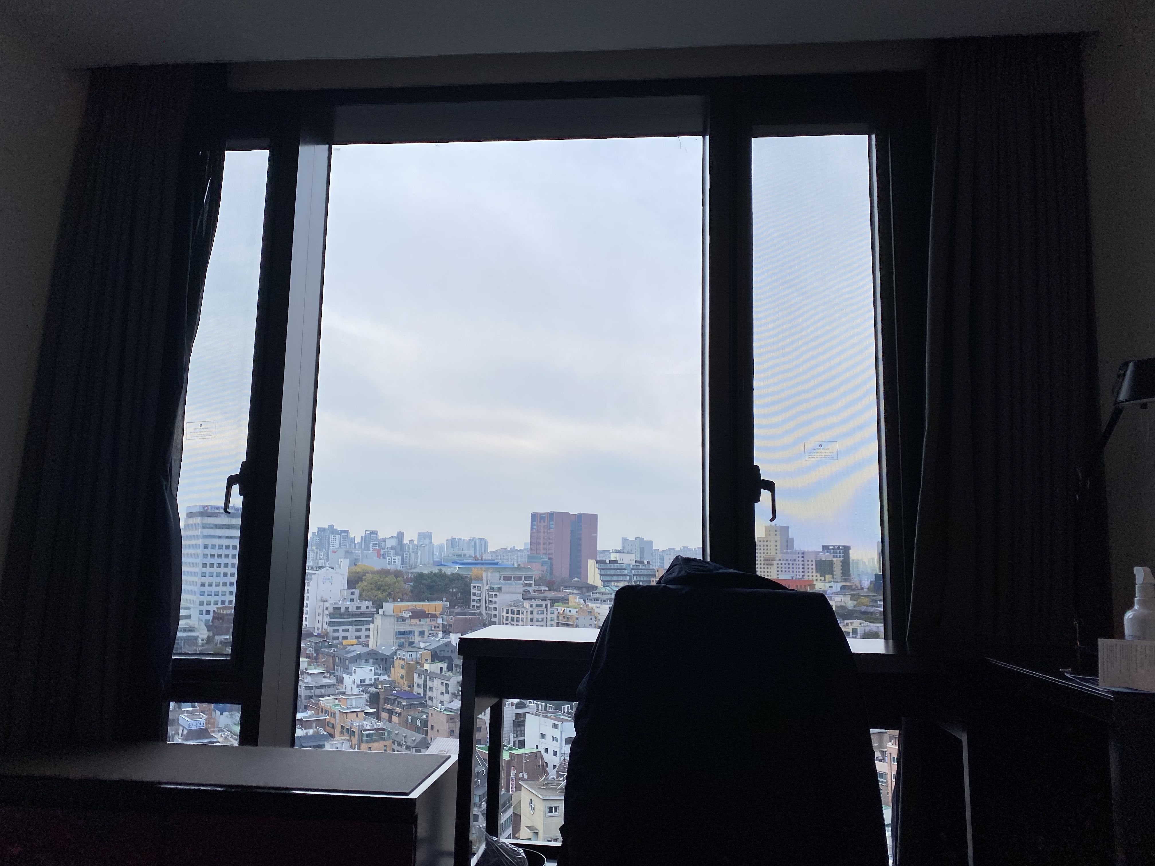 침대에서 바라본 씨티뷰 특별한 느낌은 없지만 적당한 높이에 답답하지 않은 느낌이 좋았고
