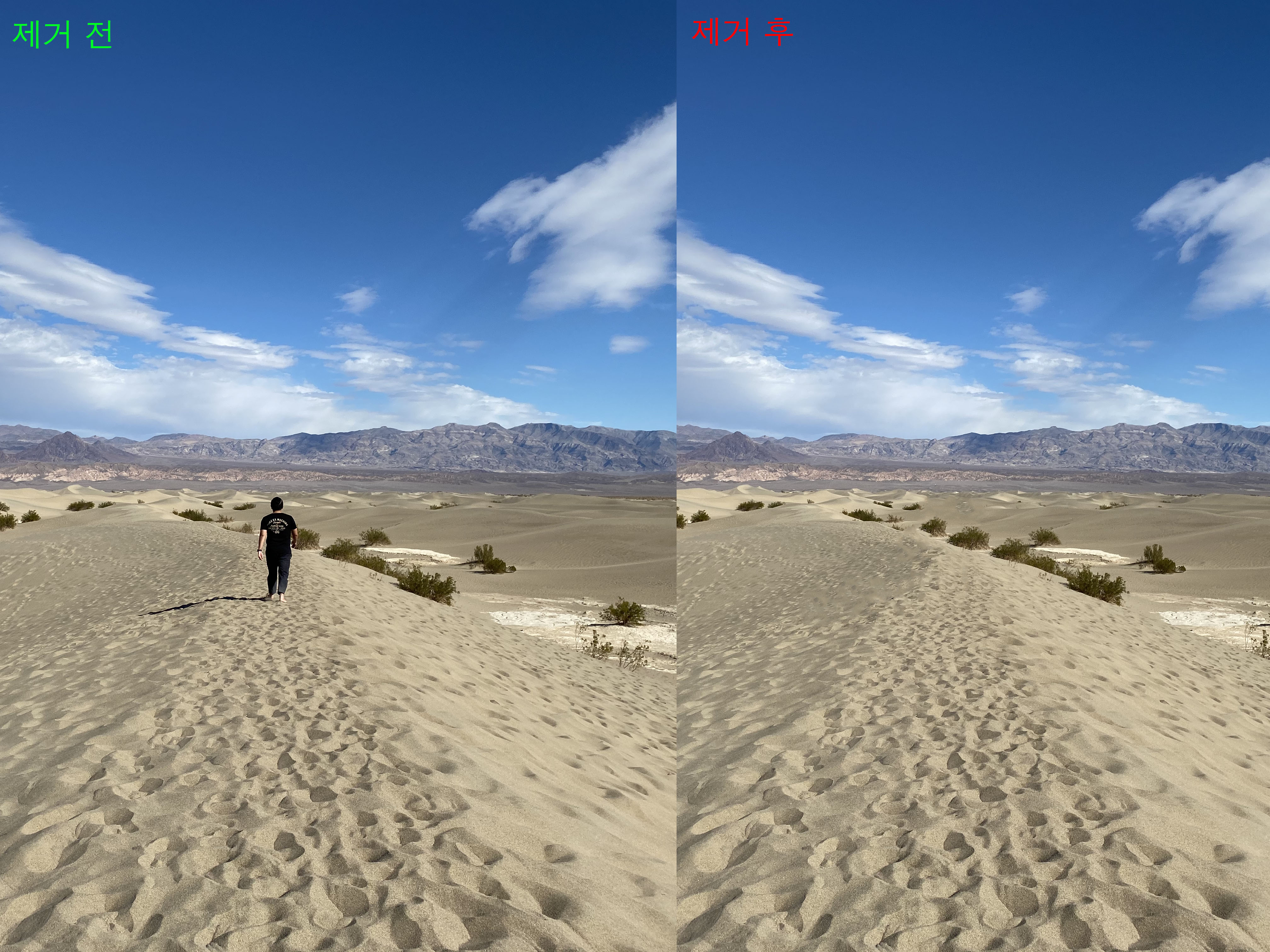 크게는 풍경사진에서 불필요하게 촬영된 사람을 지우고 싶은 경우가 있습니다.
