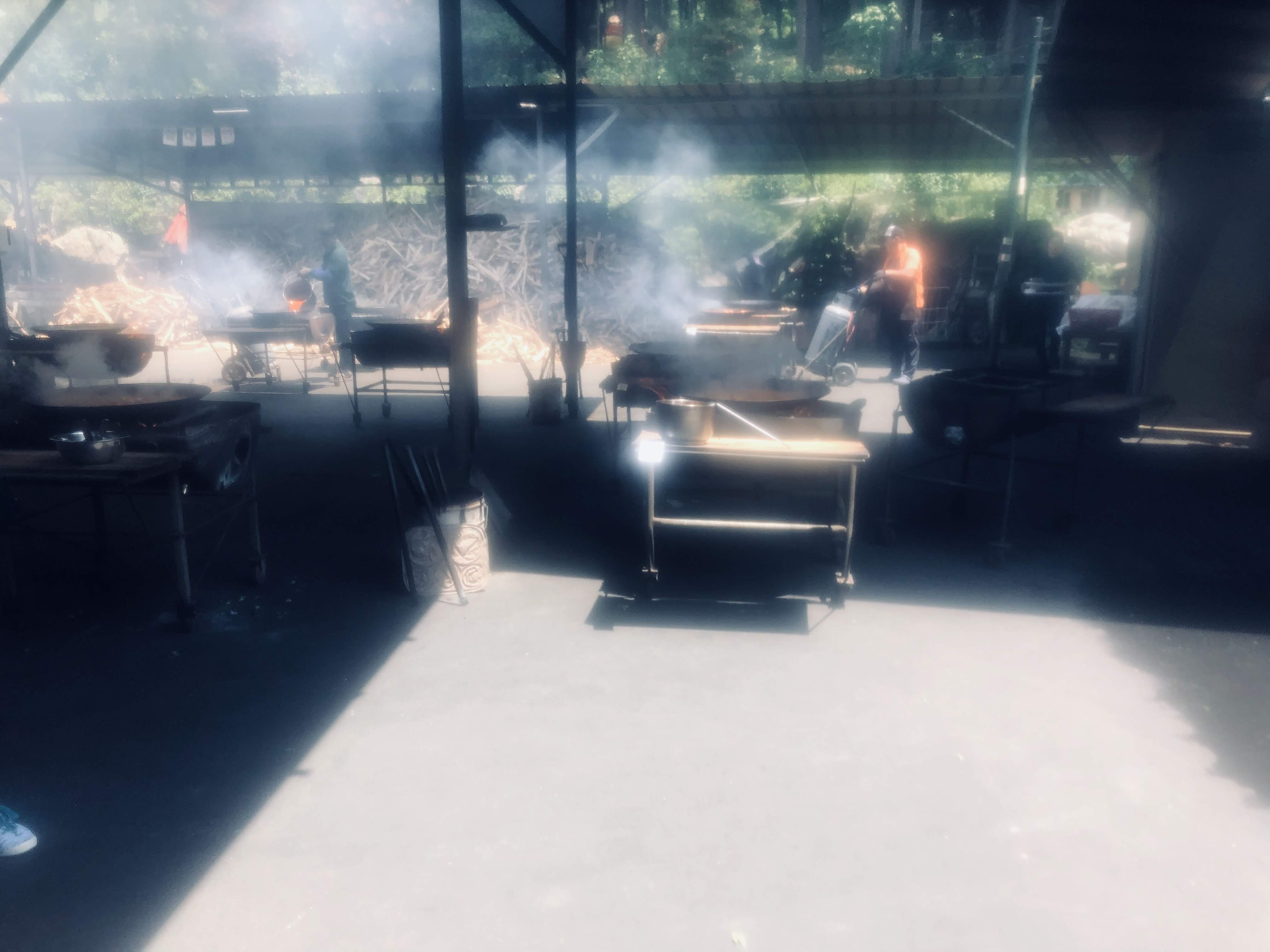 숯불로 솥뚜껑에서 만드는 닭도리탕이라니