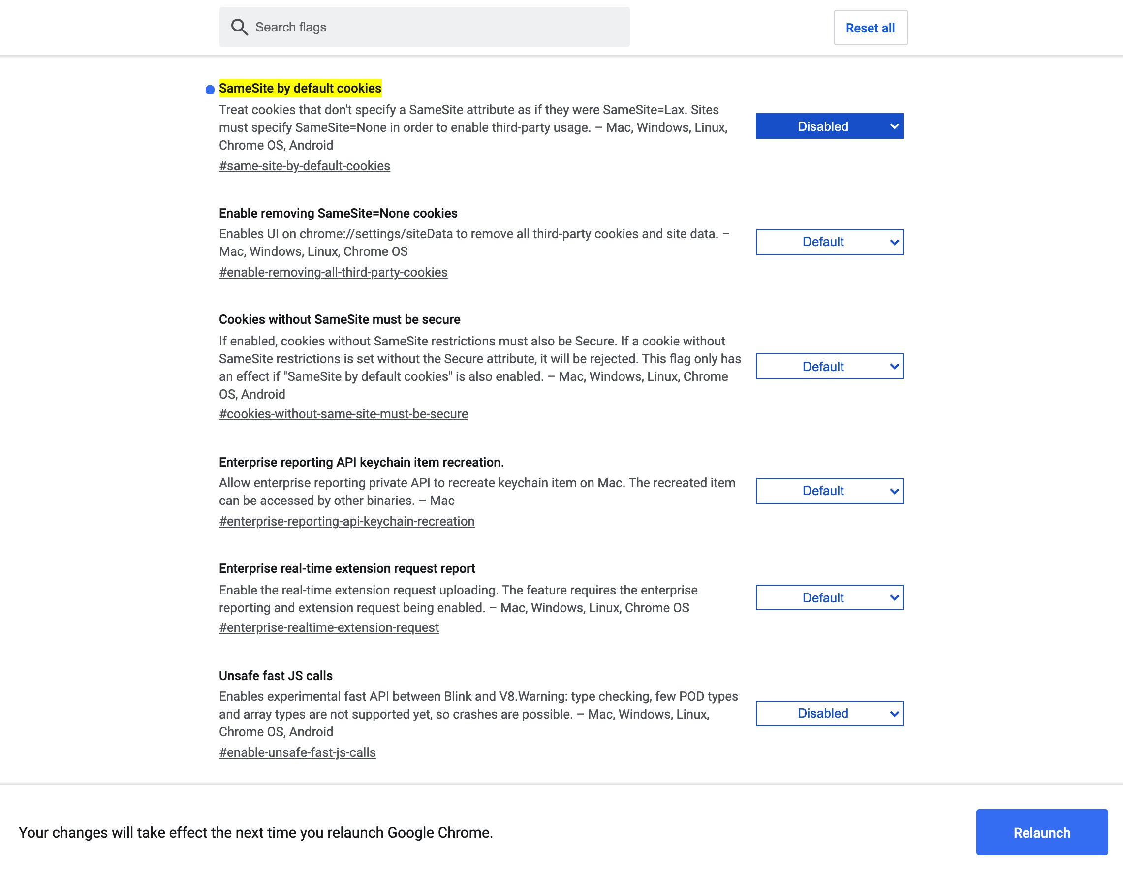 - chrome://flags/#same-site-by-default-cookies